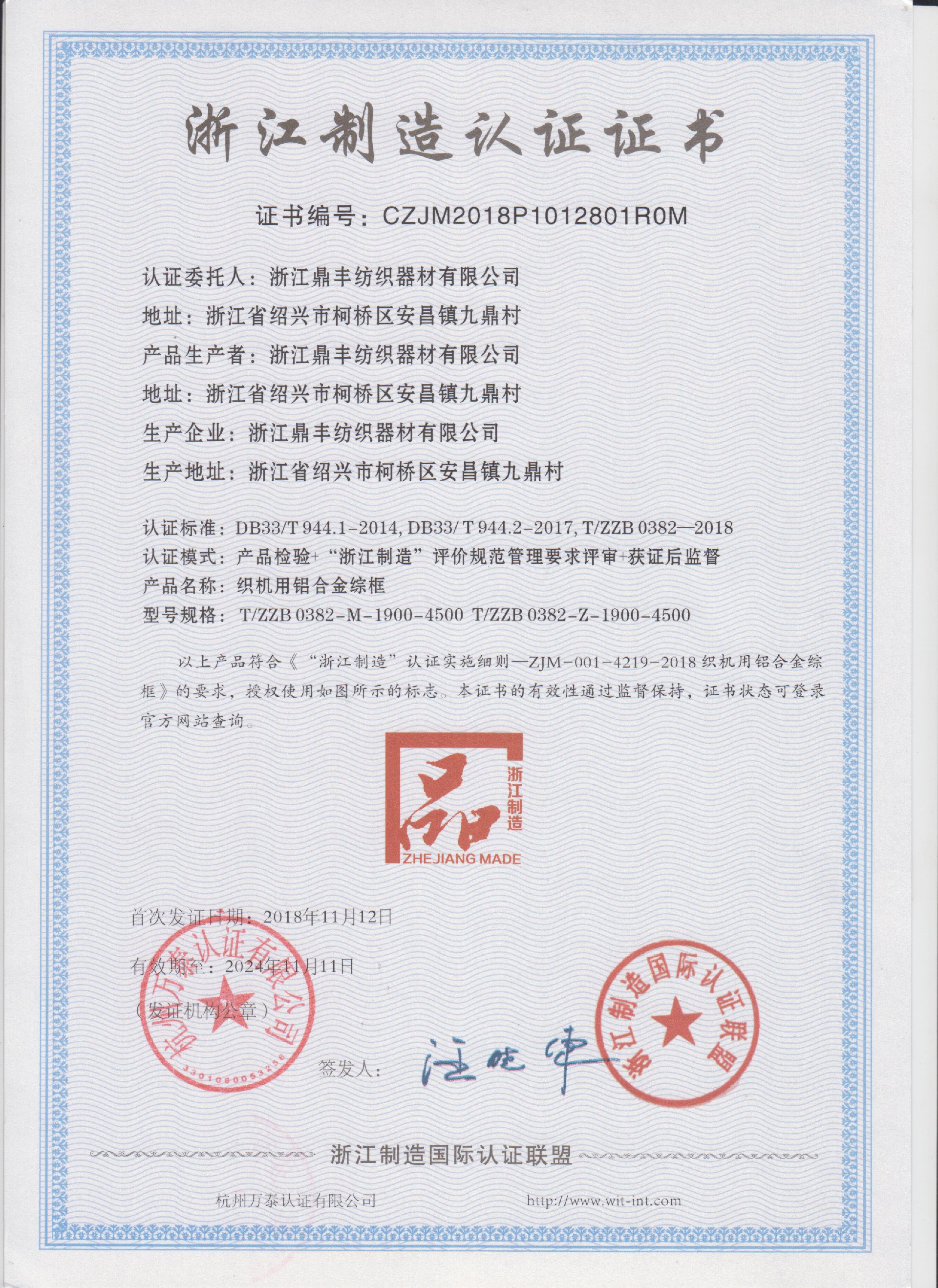 1、貴公司是一家專業(yè)生產(chǎn)各類無梭織機鋁合金鋼筘、綜框、鋼片綜、停經(jīng)片、經(jīng)軸、織軸和卷布輥等產(chǎn)品及配件的民營企業(yè)。公司成立30多年迅速發(fā)展、占領(lǐng)市場的秘決是什么?余定雅:是高品質(zhì)的產(chǎn)品,完善的售后服務(wù)和大規(guī)模的生產(chǎn)能力保證了浙江鼎豐紡織器材有限公司的產(chǎn)品銷售量在國內(nèi)獨占鰲頭。為了與全球市場經(jīng)濟接軌,鼎豐紡
